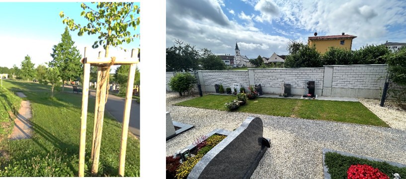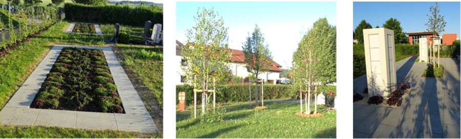 Urnengräber: Gemeinschaftsanlage, Baumhain, Urnenstelen